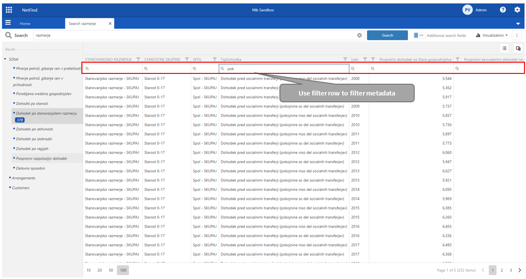 To filter data in preview table use the filter row. It is located below the header of the table.