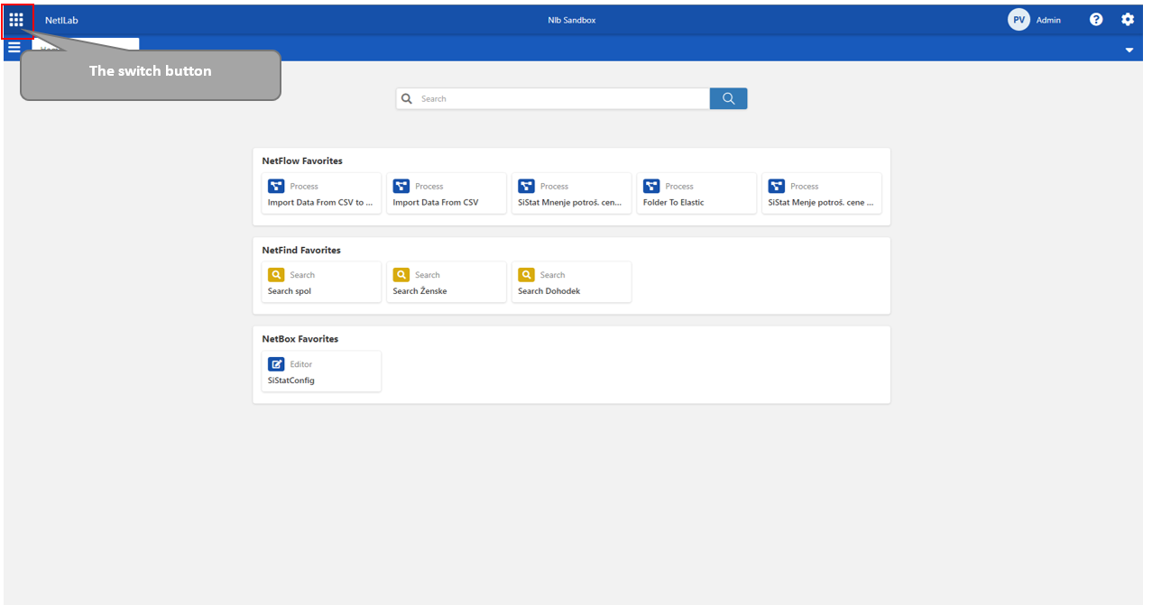 User can switch between individual NetiLab applications. These applications are: