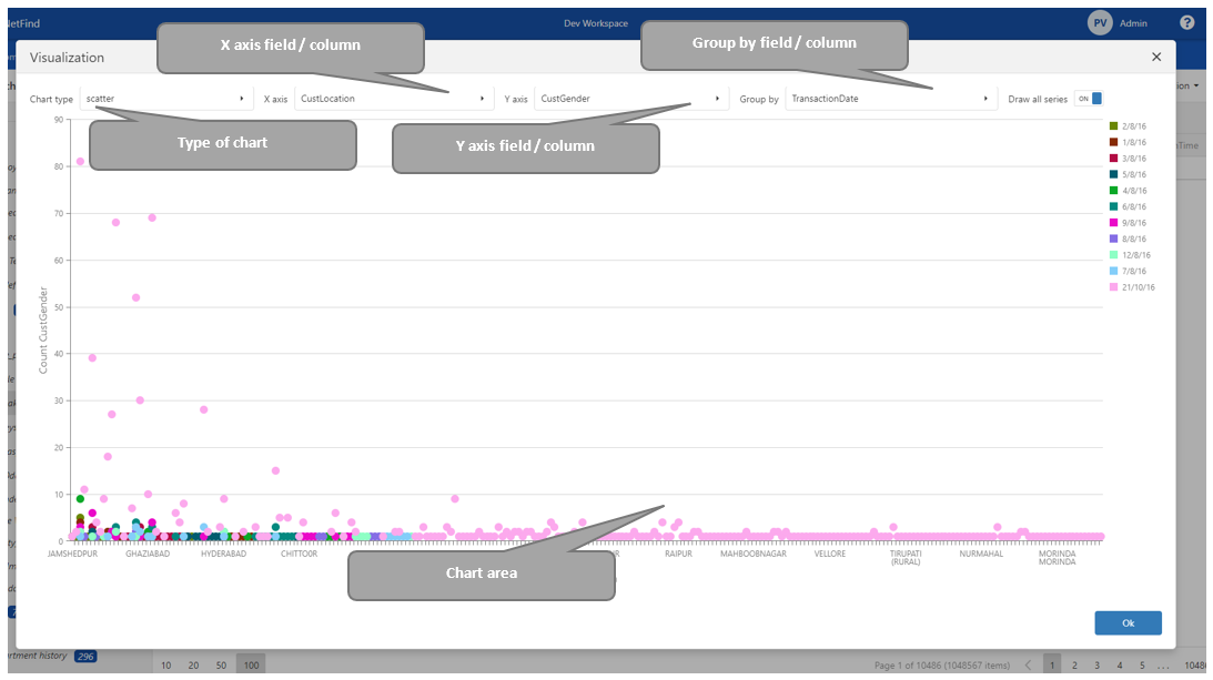 When clicking the visualization option, a pop-up with a chart appears.